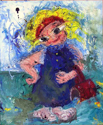 In 1960 I began to work with the concept of "girl" as a symbol of our society and started "The Girl Series". The series depicts how the artist perceives the manner in which society looks at women. Society’s weaknesses are reflected in my girls. Each painting constitutes a psychological or sociological observation on a particular topic. The titles given to the paintings are not superfluous, rather, they provide additional cues for the comprehension of the paintings. -Saul Balagura- |