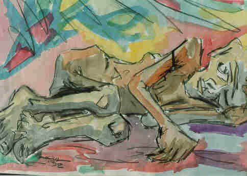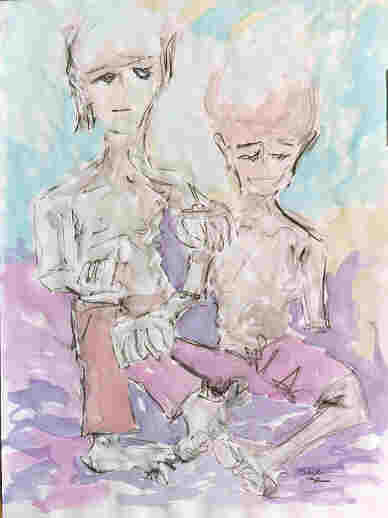 Two Children Watercolor on Paper 23 x 18 inches 1992 |